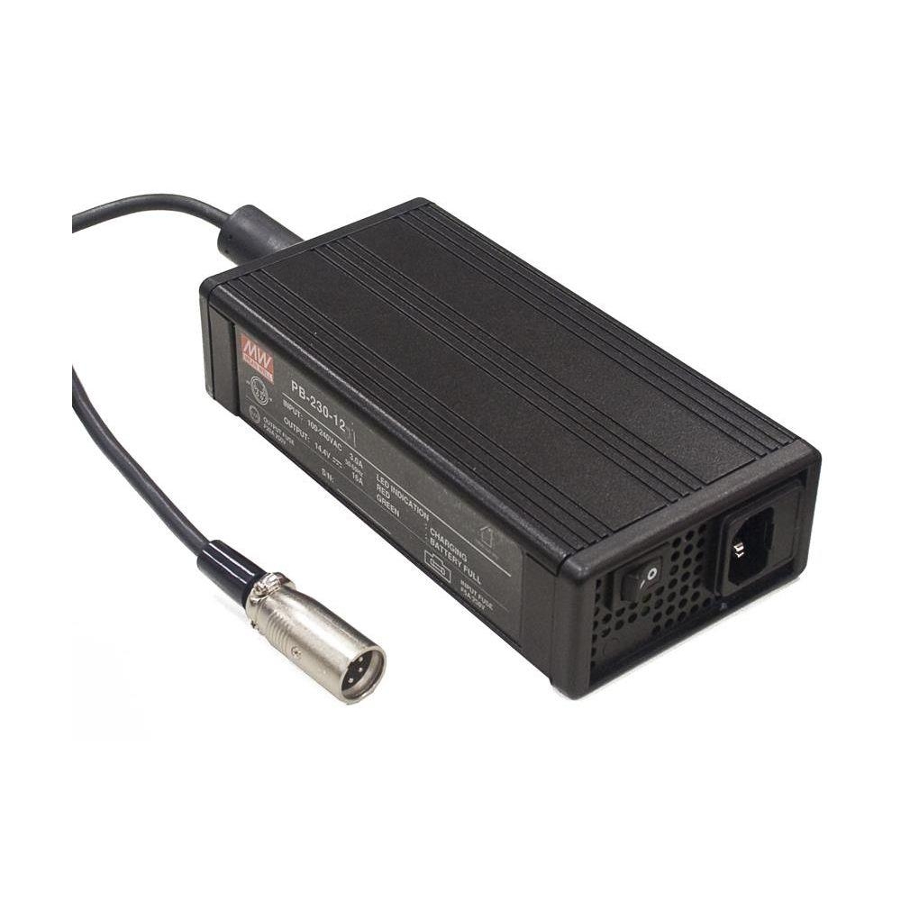 | Description | AC-DC Battery charger with active PFC; Input 3 pin IEC320-C14 input socket; Output 14.4VDC at 16A with 4 pin XLR plug; 3 stage charging with cooling fan |
