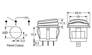 This Rocker Switch SPST Round is designed for low-voltage applications and offers IP65 waterproof protection, making it perfect for environments exposed to moisture and dust. Featuring red LED illumination, this switch operates with 12V DC and has a contact rating of 20A at 14V DC. Ideal for industrial or outdoor use, it boasts an impressive mechanical life of 100,000 cycles and electrical life of 10,000 cycles.