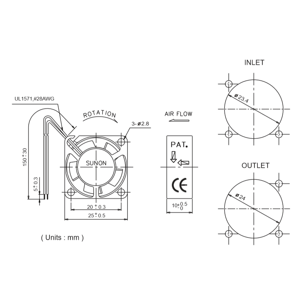 This ultra-compact 25x25x10mm 12VDC cooling fan is perfect for space-constrained applications requiring reliable airflow and quiet operation. Drawing just 0.5W of power, it delivers high-speed performance at 10,000 RPM and provides 3.0 CFM airflow, making it ideal for cooling small electronic components and circuit boards. The Vapo ball bearing ensures long-lasting and stable operation, while the low noise level of just 16 dB(A) makes it suitable for noise-sensitive environments. Supplied with lead wires for easy integration.