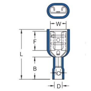 Vinyl fully insulated female spade terminal.