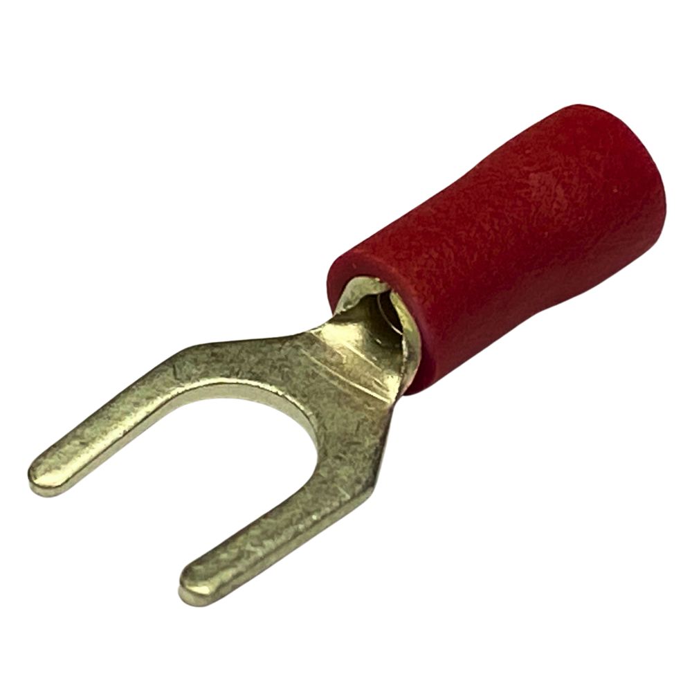 Vinyl insulated fork terminal with butted seam.