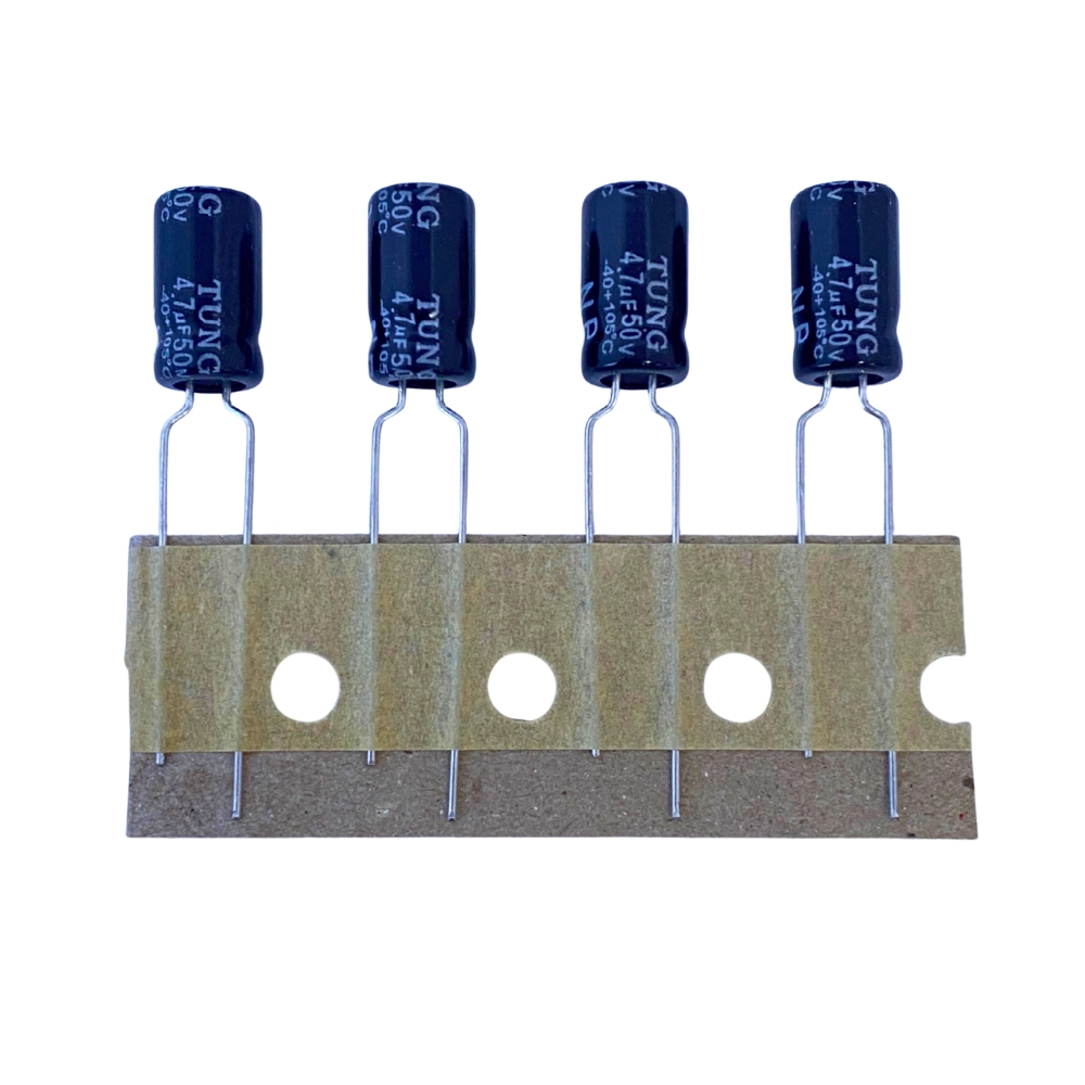 The 4.7uF 50V bipolar (non-polarized) electrolytic capacitor in a compact 5x11mm size with a 5mm lead pitch is designed for AC signal applications where polarity may reverse. Supplied in tape and reel packaging, it is ideal for automated PCB assembly. Rated for operation up to 105°C with a ripple current of 19mA, this capacitor ensures reliable performance in audio crossover networks, AC coupling, and timing circuits.
