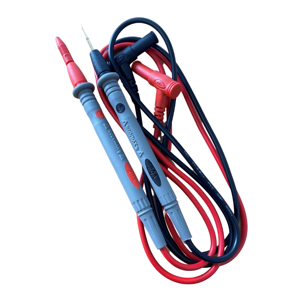 Professional quality silicone leads with angled shrouded banana plugs to pin probes.